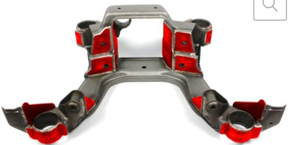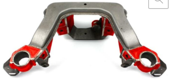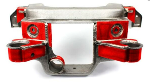 -vahvistettu takakelkka johon hitsattu vahvistuspalat kriittisimpiin kohtiin. Vahvistettu kaikki punaisella osoitetut kohdat!, valmistettu Laser-leikkaamalla 3 mm S355-laatuisesta teräksestä, valmistettu suomessa!